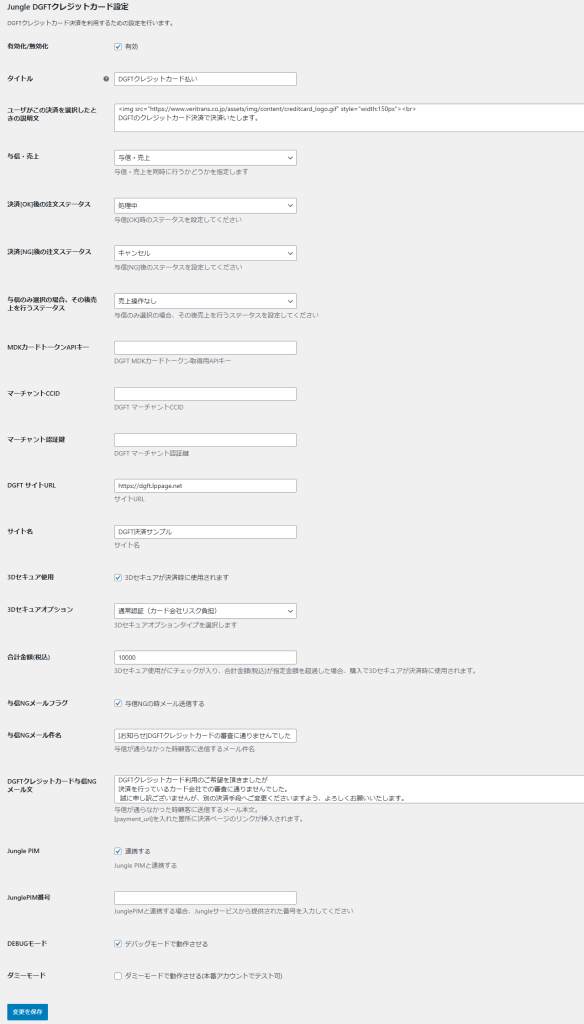 DGFTクレジットカード決済プラグイン by JUNGLE の設定方法