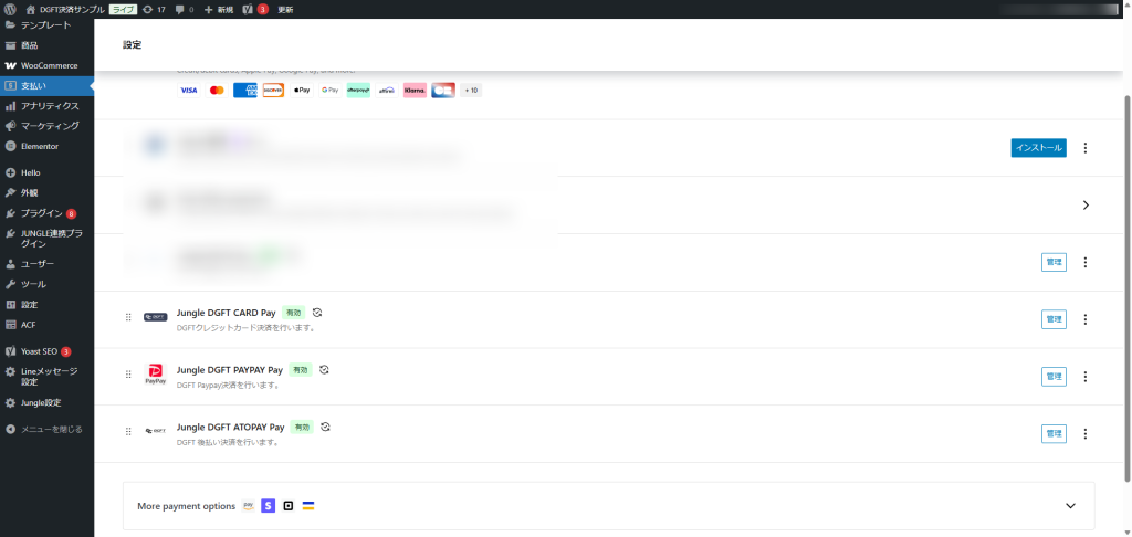 DGFT for woocommerceプラグイン by JUNGLEは、JUNGLEがDGフィナンシャルテクノロジー様と連携して開発したWoocommerce用の決済プラグインです。