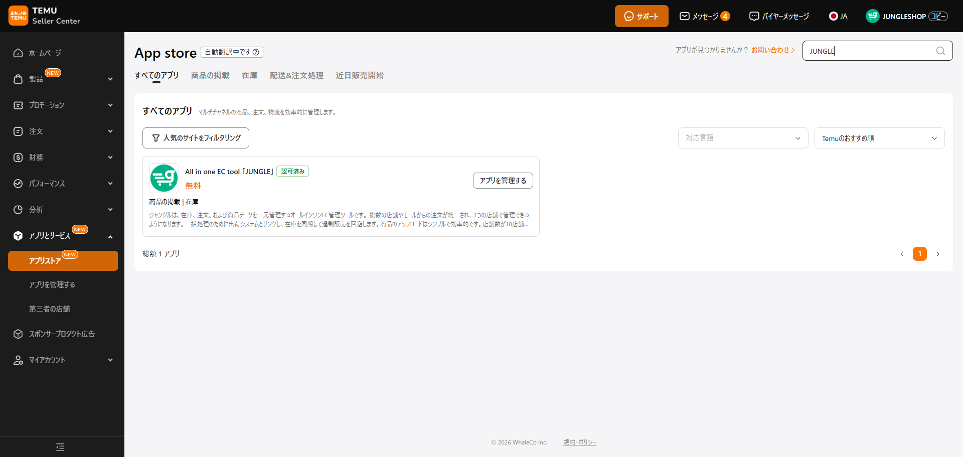 TEMUとオールインワンECツール「JUNGLE」を自動連携するアプリです。